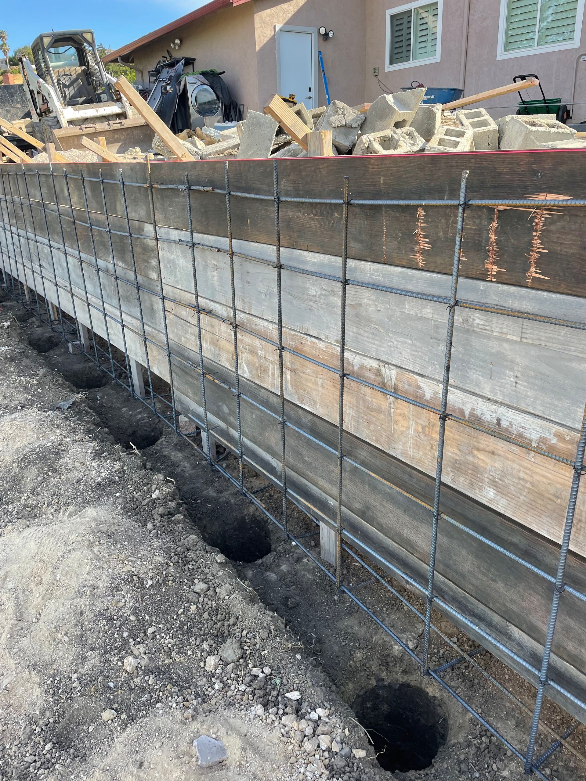Reinforcement depends on the wall type. Segmental walls often use geogrid mesh anchored in the soil, while concrete walls rely on rebar for strength. In the Bay Area, earthquake-proof features are especially important to prevent shifting or wall failure over time.